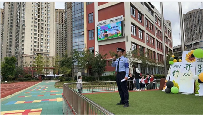 丰宁派出所民警到五华外国语实验小学,借一年级新生入学召开入学典礼的有利时机,为新入学的学生及在校教师开展“开学第一课”暨“护航开学季”普法宣传活动。