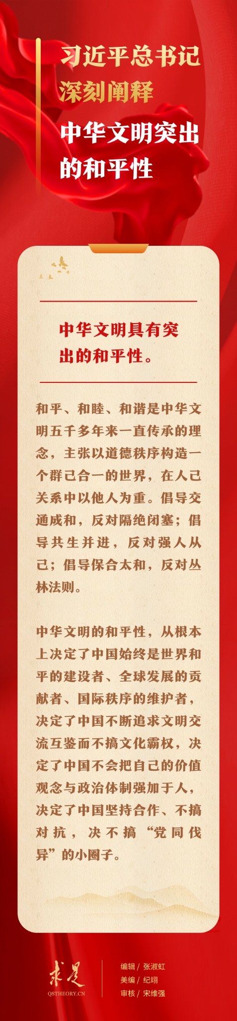 9月1日出版的第17期《求是》杂志刊发习近平总书记重要文章《在文化传承发展座谈会上的讲话》。在这篇重要文章中,总书记从中华文明具有突出的连续性、突出的创新性、突出的统一性、突出的包容性、突出的和平性5个方面,对中华文明的突出特性作出深刻阐释。