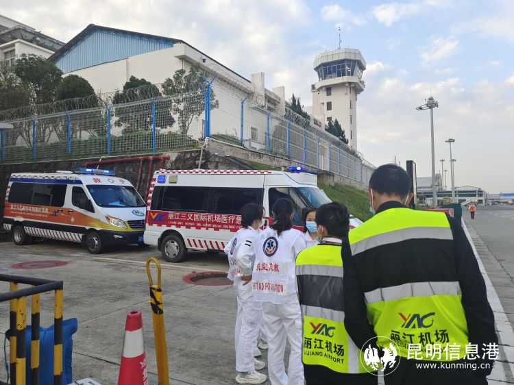 在航班落地前,各保障单位全部到场就位,7点59分,8L9817航班平稳降落丽江机场。