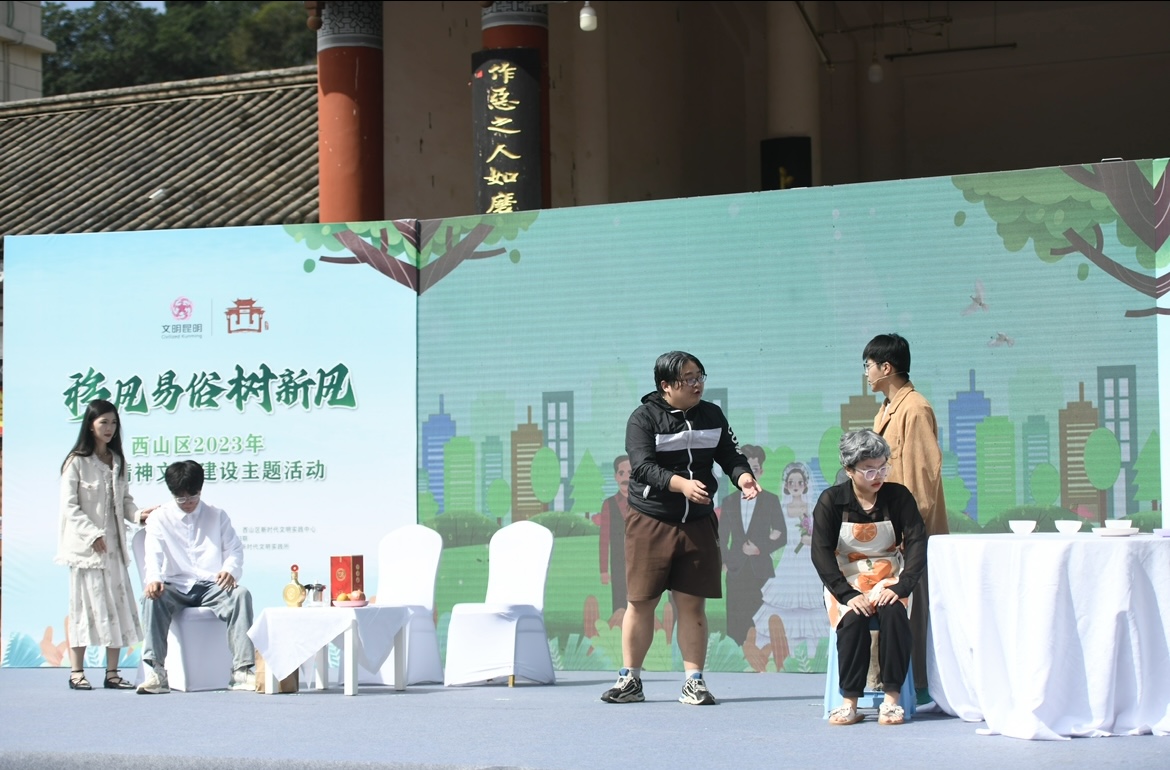 “让婚姻始于‘爱’,让彩礼归于‘礼’,拒绝高价彩礼,从我做起……”随着舞台上演员们的动情演出,情景短剧《高价彩礼,幸福的‘绊脚石’》为活动拉开序幕,这是一部接地气、主题鲜明的特色短剧,以抵制高价彩礼为主题,讲述了剧中主人公因高价彩礼求婚被拒,最后又因爱而成就一段佳话的故事;主题沙画《看·见文明西山》用文明新风、孝老爱亲、厚养薄葬、诚实可信、高价彩礼、村规民约六幅生动的沙画作品讲述了西山区在推进移风易俗工作中取得的成效;独具民族特色的舞蹈《一起来猜猜》《欢乐彝家》,让人深感民族文化魅力。