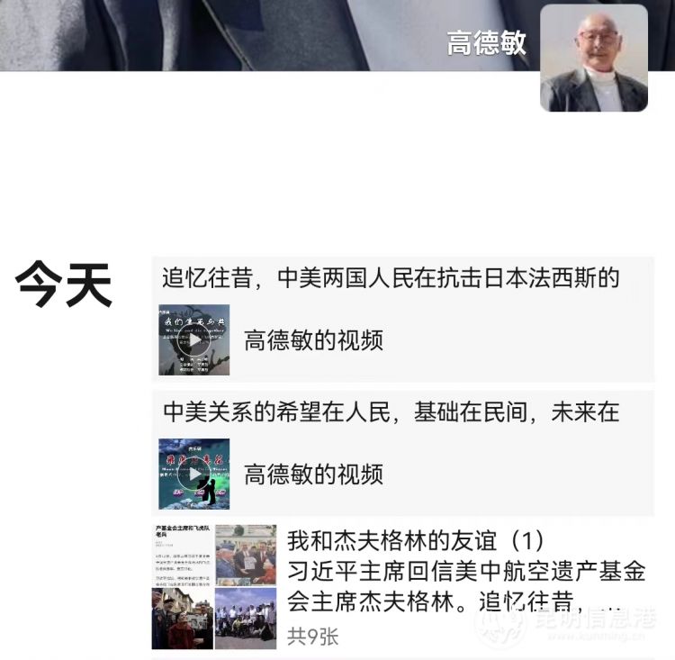 19日一天之内,高德敏朋友圈连发了三条内容,都是在分享习近平主席复信飞虎队一事给他带来的感受和对中美友谊的追忆。