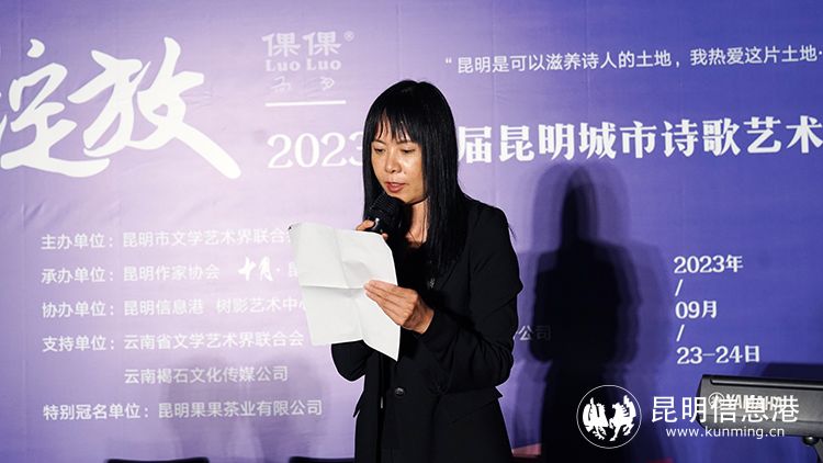 昆明信息港讯 记者孙红亮 “我宣布,2023第二届昆明城市诗歌艺术节闭幕!”9月24日晚,绽放·诗与歌之夜暨第二届昆明城市诗歌节诗歌征文大赛颁奖典礼在树影艺术中心举行,昆明作家协会主席、著名作家陈鹏宣布活动圆满落幕。