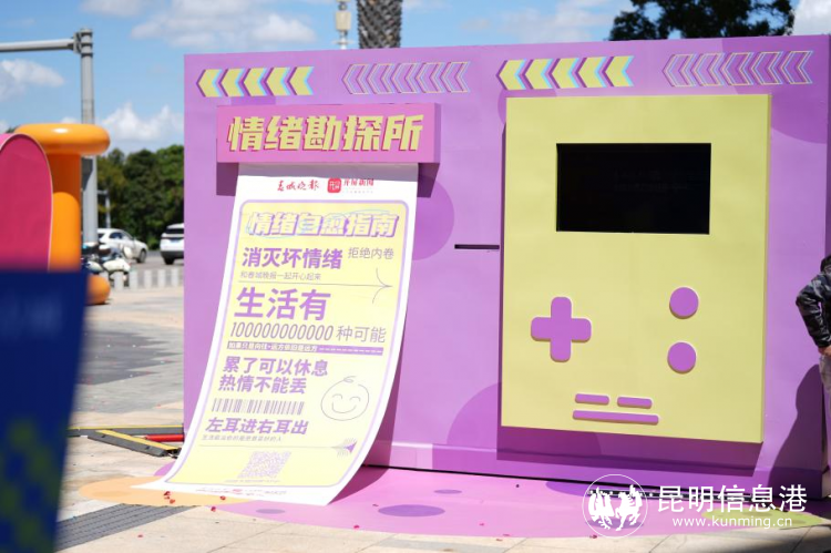 昆明信息港讯 记者李金梓 9月23日至24日,春城晚报(开屏新闻)生活节“送服务”系列之一的“情绪咖啡亭”活动在七彩云南·第壹城正式启动。该活动以“情绪自愈”为主题,以多巴胺设计风格布置四组互动艺术装置,邀请市民朋友们参与体验,并通过心理沙龙和大家一同探索“情绪识别”、“情绪自愈”等命题,体察当代人的情感需求,传递人文关怀与城市温度。