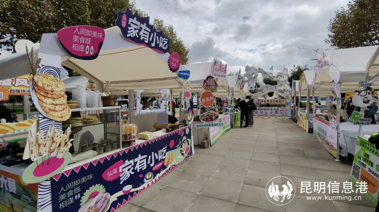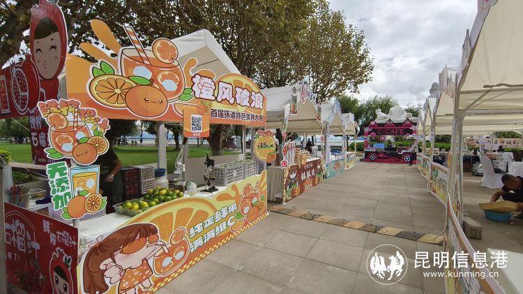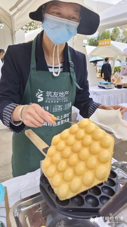 来到海埂公园团结广场,美食展位一个接一个,一排排铺开,现场集市各种各样的美食、工艺品吸引了市民及游客驻足。文创冰淇淋、港式蛋仔、现磨咖啡、夏日冰饮、云南各地特色美食小吃等,让双节期间来到公园游玩的游客,不仅可以赏美景,也能品尝到云南特色美食及特产。