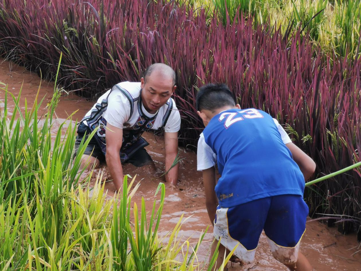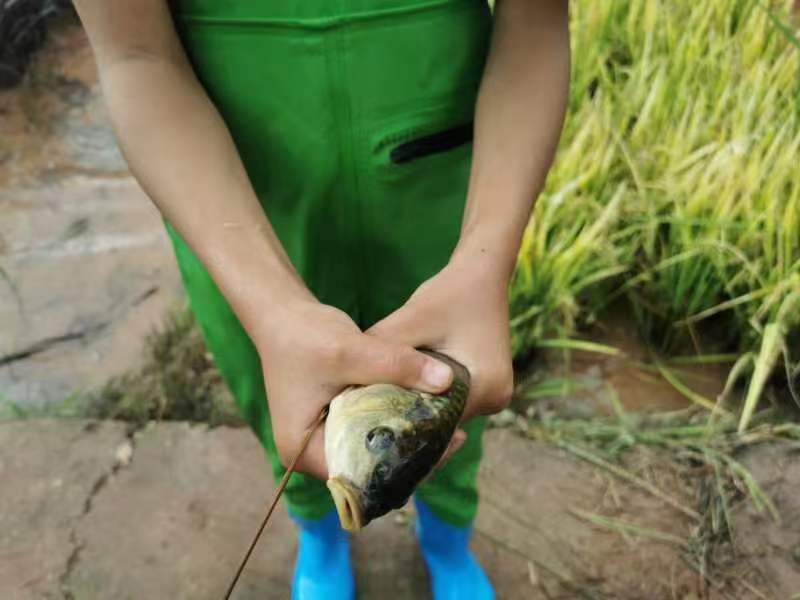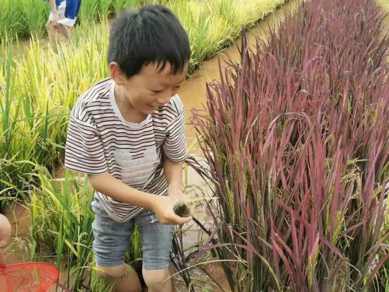 作为当天活动的重头戏,稻田摸鱼“野”味十足,受到游客热烈欢迎。大家置身田间嬉戏,化身“摸鱼能手”,徒手摸鱼,解锁开盲盒的惊喜。鱼儿在腿间自由穿梭,软软的泥土和金灿灿的稻田间,充满了爽朗的笑声。人们与鱼儿在稻田里“ju你追我赶”,摸到的稻花鱼还可以带回家。一场摸鱼狂欢,唤起了大人们儿时的记忆,也给孩子们感受到了亲近自然的童年乐趣。