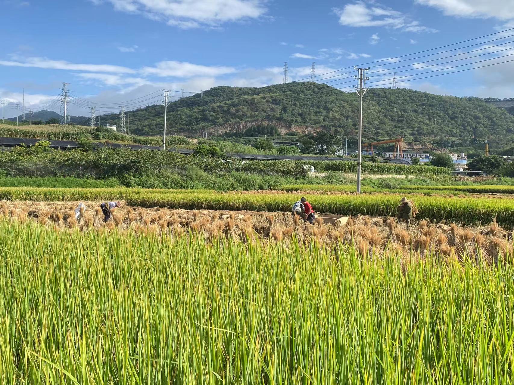 在高末社区马厂村水稻种植地里,一片片金色的稻田,翻滚起层层稻浪,低垂的稻穗颗粒饱满。不远处,村民们正在稻田里来回穿梭作业、收割、脱粒,一派丰收繁忙的景象。村民李仙兰正和家人在稻田里收割水稻,今年她家的水稻长势喜人,不仅产量高,品质也很好,比去年亩增300斤左右,他计划拿去街上卖。