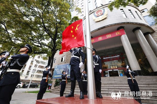 昆明信息港讯 记者合宇聪 10月1日,昆明市公安局隆重举行升国旗仪式,庆祝中华人民共和国成立74周年,深入学习领会9月28日习近平总书记给中国人民公安大学在读英烈子女重要回信精神。省公安厅党委委员、昆明市副市长、市公安局局长徐云参加仪式并讲话。