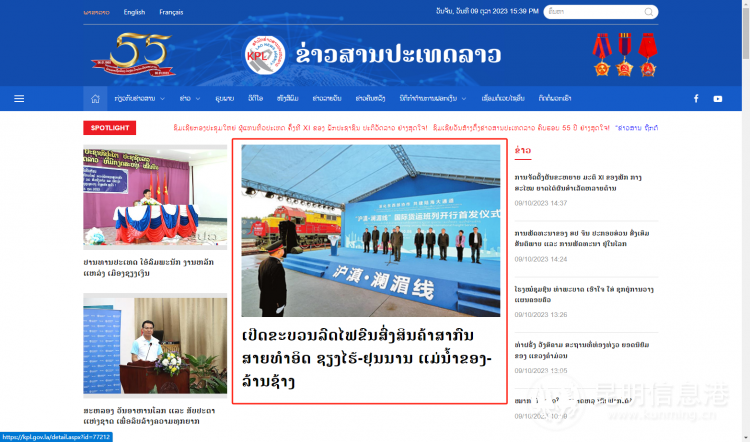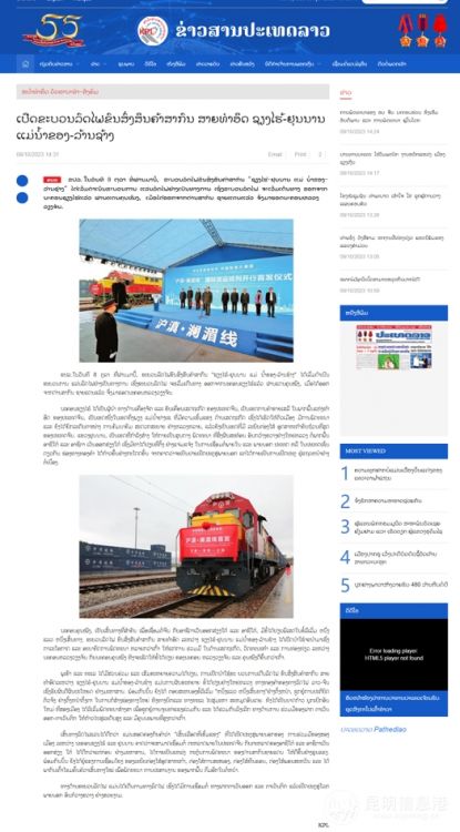 据悉,老挝《人民报》创刊于1950年,现为老挝国内发行量最大的报纸之一。此次老挝《人民报》关于“沪滇·澜湄线”国际货运班列开行报道,是对中老铁路开通、RCEP落地生效、中国国家南向开放等战略机遇的肯定,将进一步扩大中老铁路在老挝及周边国家地区的知名度和影响力,深化双方合作交流。