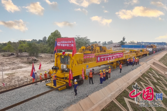 2020年3月27日,中老铁路轨道首铺。中铁二局 臧衡 摄