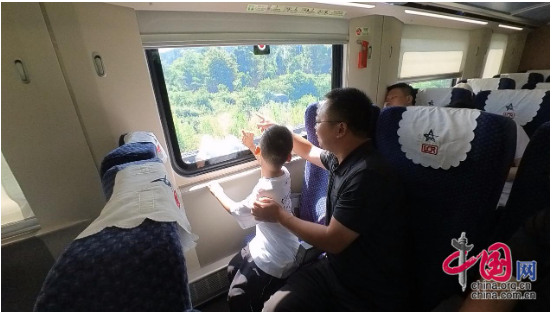 兰广文携家人乘坐中老铁路“澜沧号”。中铁二局融媒体中心 供图