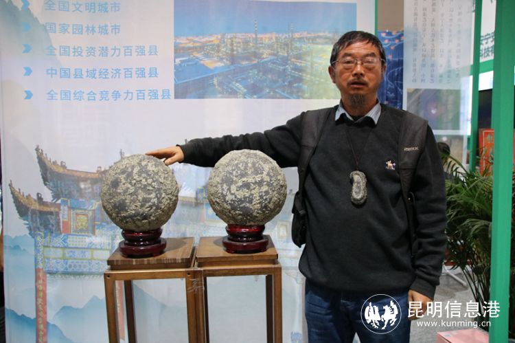 昆明信息港讯 记者甘凌菲 走进2023云南文博会“创意昆明馆”的安宁市展厅,一对直径约28公分的石头闪闪发光,远看石头上竟呈现着“安”“宁”二字。这是安宁市非遗传承人薛宗权花了近10年的时间寻找到的铁胆石,目前两块石头也成为了安宁市赏石文化艺术的形象标志石。