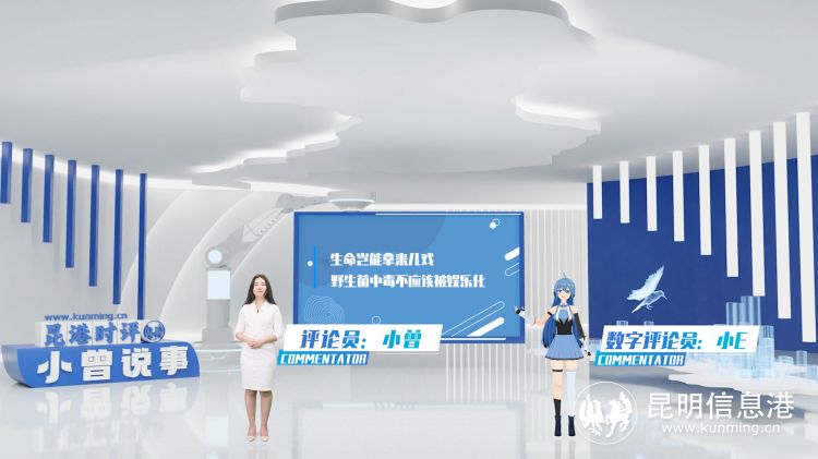 随着虚拟数字人技术的不断发展,其应用领域也在不断扩展。昆明信息港结合当下受关注的虚拟主播及数字人概念,推出了《昆港时评·小曾说事》节目。节目运用动作捕捉技术及三渲二动画技术制作了昆明信息港首个数字人评论员,并依托数字虚拟演播厅实现真人评论员与数字评论员互动。这一全新的网评形式,以时下最受关注的概念与直接明了的观点输出相结合,获得了广大网友好评,取得较好传播效果。