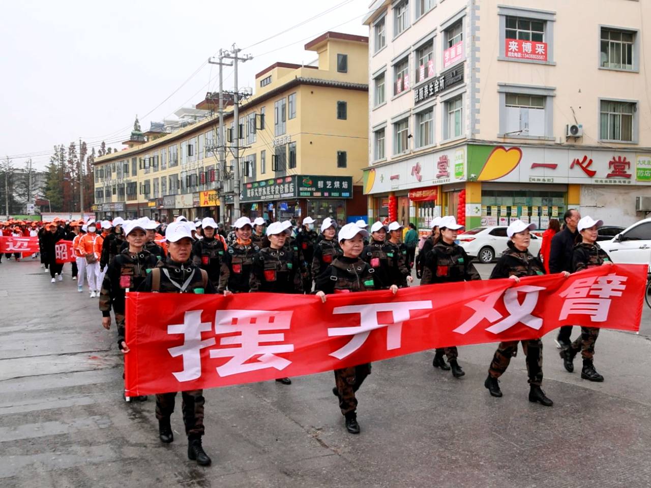 启动仪式结束后,大家上街进行了健步走。