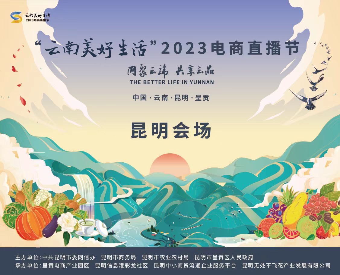 本次网聚云端·共享云品“云南美好生活”2023电商直播节昆明会场启动活动由中共昆明市委网信办、昆明市商务局、昆明市农业农村局和呈贡区人民政府主办,呈贡电商产业园区、昆明信息港彩龙社区、昆明中小商贸流通企业服务平台、昆明无处不飞花产业发展有限公司承办。