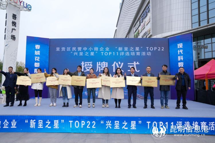 现场为评选出来的呈贡区民营中小微企业“新呈之星”TOP22和“兴呈之星”TOP11企业授牌