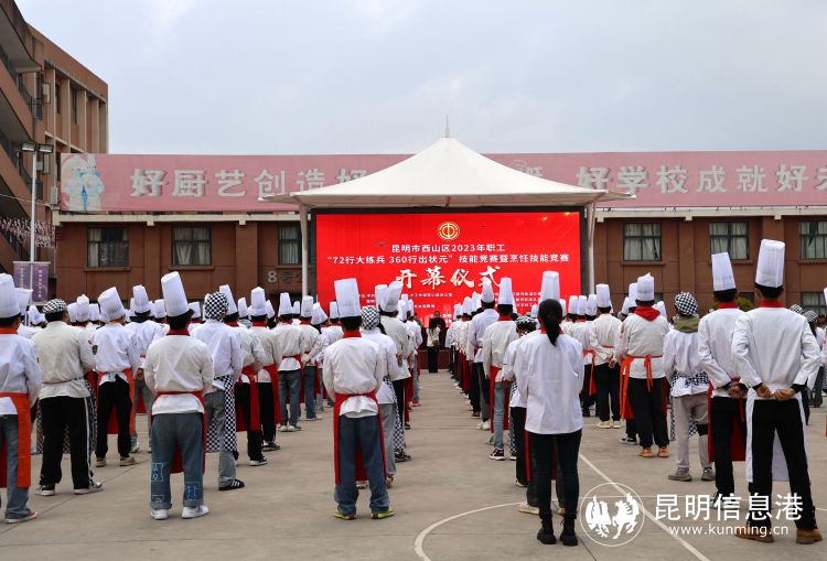 昆明信息港讯 记者李莹 11月24日,昆明西山区2023年职工“72行大练兵 360行出状元”烹饪技能竞赛在碧鸡街道云南新东方烹饪学校鸣锣开赛,来自辖区十家企业101名职工代表同场竞技,充满展示全区烹饪相关职业技能水平。