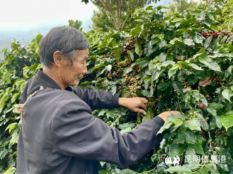 采收仪式当天,一颗颗宛如红宝石的咖啡果点缀在一簇簇绿叶间,格外耀眼。新寨村村民张大爷和50多名咖农将完全成熟的红果收摘入筐内。在之后的采摘期,新寨村每天都将有数百人次上山采收最合适的成熟果实,整个采收季参与咖啡采收生产的咖农将超过万余人。