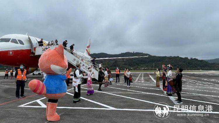 当天,首航航班抵达普洱机场后,当地机场以一场民航界的最高礼仪“过水门”仪式庆祝航线开通。身着当地民族服装的工作人员,用独具地域特色的音乐和舞蹈欢迎首航机组和旅客的到来。