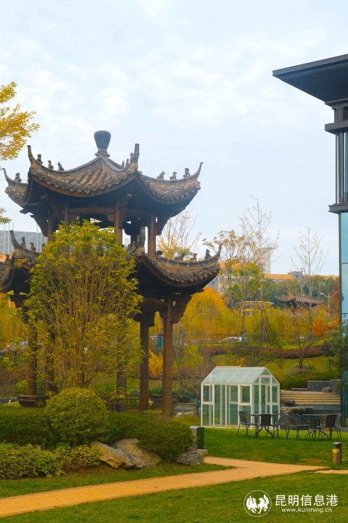 位于梁王路与兴园路交叉口光明璟宸小区旁的听泉映月汲取传统中国园林精髓,运用木质结构打造传统亭廊,银杏、桂花、滇朴、红枫、樱花、竹子等树木与拱桥、凉亭、圆桌、座椅、小型儿童游乐设施等休憩设施打造出别样的景致,水景浮光和水色交错出古朴的画卷。