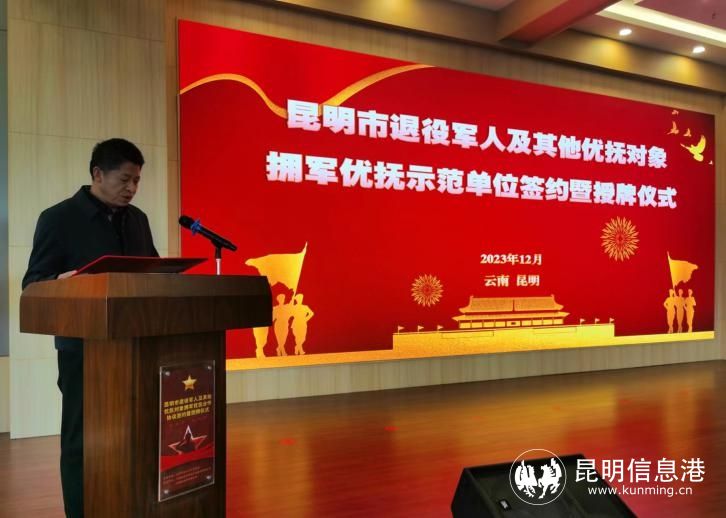 2023年度昆明市退役军人及其他优抚对象拥军优抚合作企业签约暨授牌仪式在昆举行。