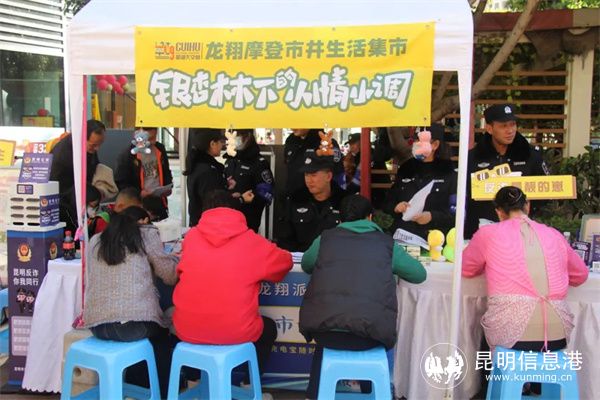昆明信息港讯 记者合宇聪 日前,昆明市公安局五华分局龙翔派出所联合龙翔街道办事处在版筑翠园后街摩登集市设立“反诈宣传小摊”,用“摆摊式”的宣传方法,开展防范电信网络诈骗宣传活动,吸引了200多名群众参与。