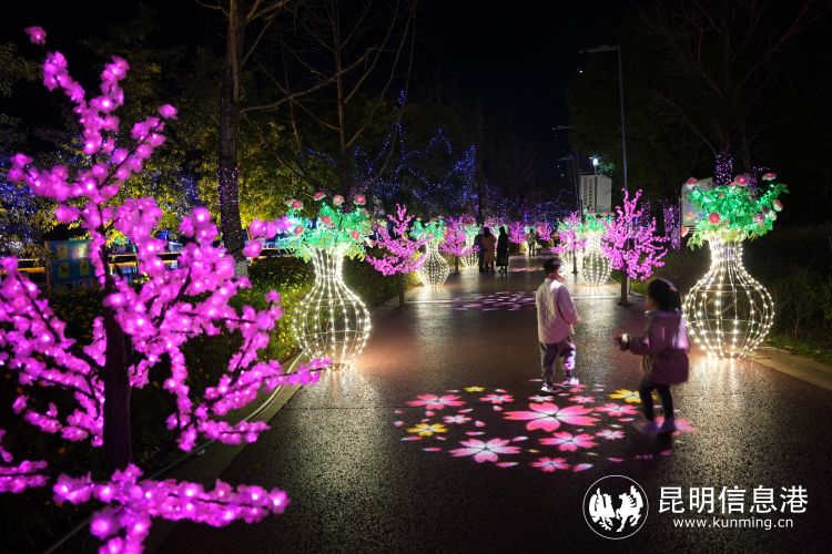 “玩场挺多的!有龙元素的彩灯,也有我们云南的大象、蘑菇、昆虫灯,还有大舞台可以看表演。”昆明市民刘女士表示,自己就住在瀑布公园附近,吃了晚饭一家人就来散步观灯,她正在拍摄视频告诉亲友们这个昆明夜游新玩场。