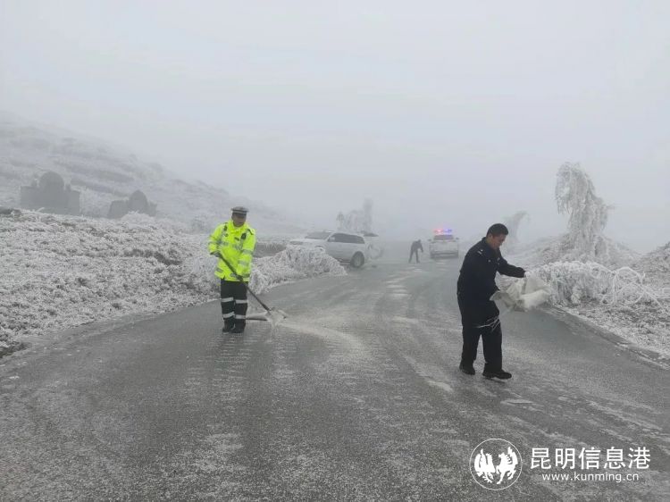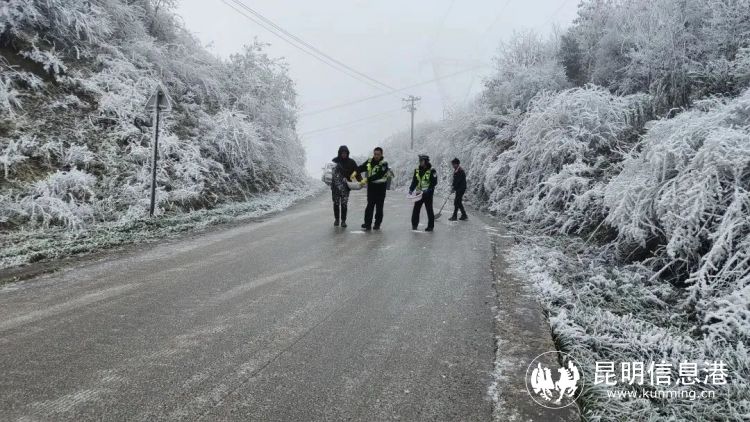 昭阳交警启动抗冰保通应急预案,迅速派出警力对辖区多个结冰路段,加强路面勘查及巡逻提醒,提前铺洒融雪剂,努力除冰,疏堵保畅,全力做实抗冰保通工作。