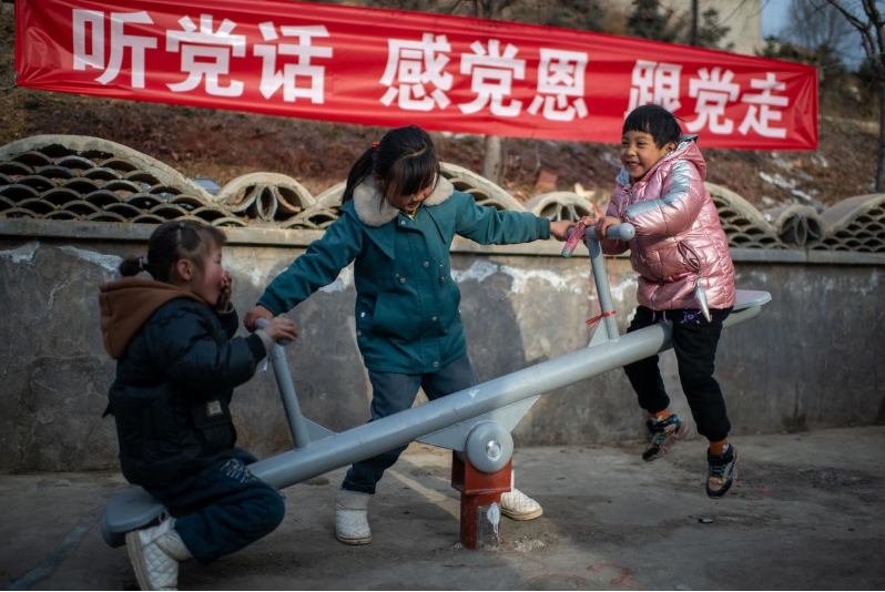 12月23日,在积石山县柳沟乡尕集村五社安置点,小朋友正在玩耍。人民网记者 翁奇羽摄