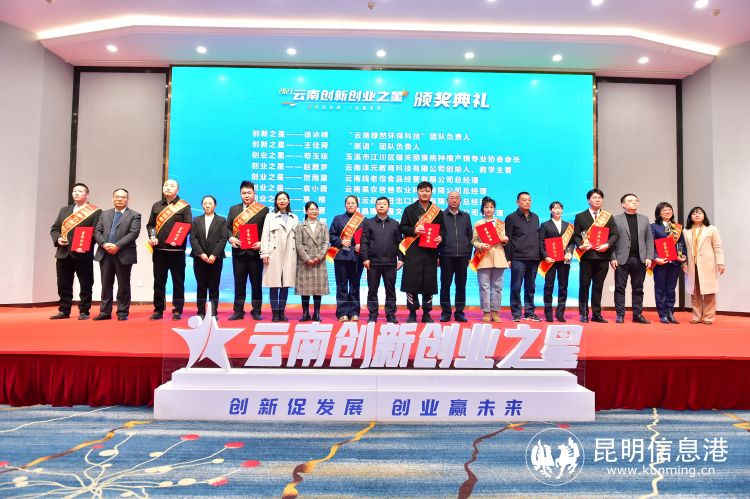 昆明信息港 记者姚仲恒 12月22日,由共青团云南省委、云南省发展改革委联合省工业和信息化厅等16家单位共同举办的2023年“云南创新创业之星”选树活动在昆明举行颁奖典礼。各主办、联办单位领导,高校创新创业工作负责人、金融机构、获奖者代表及专家导师等100余人参加颁奖典礼。