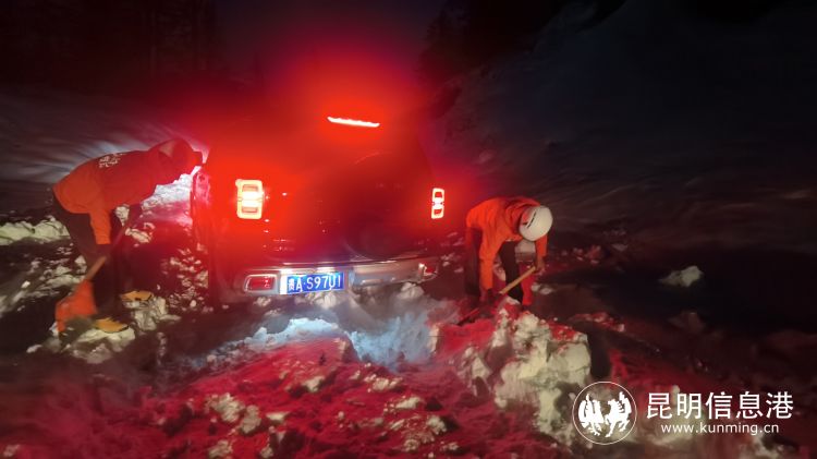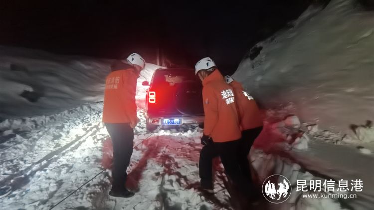 昆明信息港讯 记者劳学丽 通讯员杨顺成 辛余 12月25日傍晚,一辆自驾游越野车被困在云南迪庆州德钦县的孔雀山上,风雪和低温下,车辆在及膝的积雪中无法动弹。19时许,接到报警电话的消防救援人员赶到现场,经过近1个小时的努力,车辆成功脱困,被困游客获救。