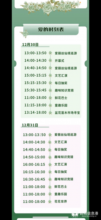 昆明信息港讯 记者段佳琪 2024年元旦假期临近,2023年12月30日至2023年12月31日,在呈贡斗南,“斗南街道2023年鲜花巴士创意文化艺术节&消费季主题活动”将在殷联社区昆明盆花苗木市场举行。