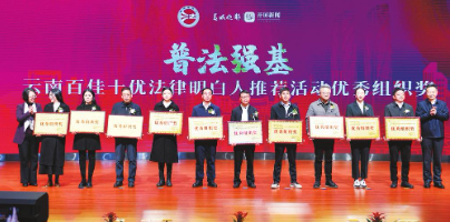 12月28日,由中共云南省委宣传部、云南省司法厅、云南省普及法律常识办公室联合主办,云南春晚传媒有限公司(春城晚报-开屏新闻)承办的“普法强基·云南百佳十优法律明白人”推荐活动颁奖仪式在云报传媒广场举行。