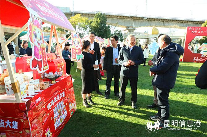 李富贵等参会领导在昆明市青年企业家商会会长吴梁玮等人的陪同下,先后到冬冬食品、昆明市亿壕城堡温德姆至尊酒店、海克力斯和赢融印象等会员企业展示区,了解青商集市参展企业产品,他对昆明市青年企业家商会举办的“青商集市”展览活动给予充分肯定和高度评价。
