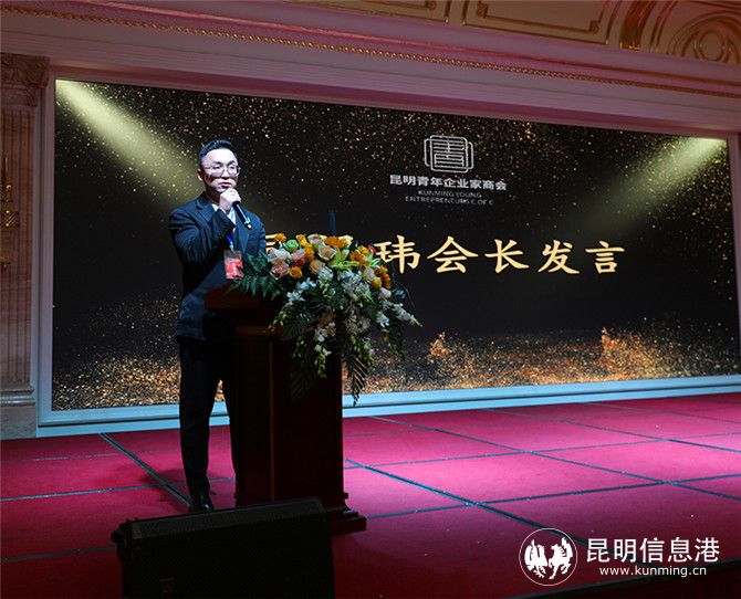 昆明市委统战部副部长、市工商联党组书记李富贵出席会议并讲话。云南省委统战部、省工商联、昆明市委统战部、市工商联、市民政局等单位相关处室负责人出席会议,云南省青年企业家商会会长郑晓城,昆明市福建晋江商会等30余家友好商会代表,昆明14个县(市)区青年企业家商会会长、青年企业家代表、昆明市青年企业家商会全体会员等400余人参加会议。