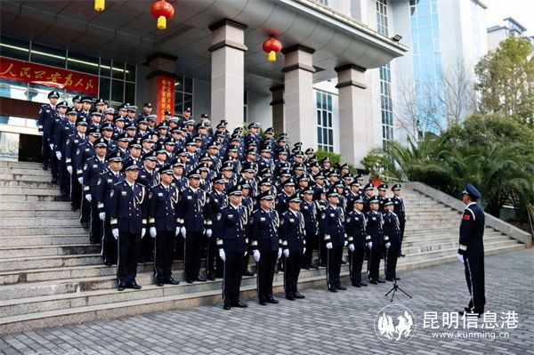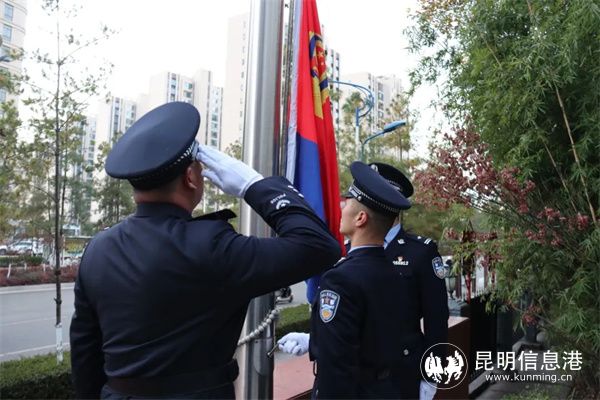 昆明信息港讯 记者合宇聪 1月10日,嵩明县公安局举行升警旗暨重温入警誓词仪式,庆祝第四个中国人民警察节。