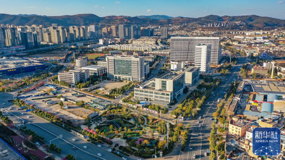 ↑昆明市五华区普吉公园一景(无人机照片,1月12日摄)。