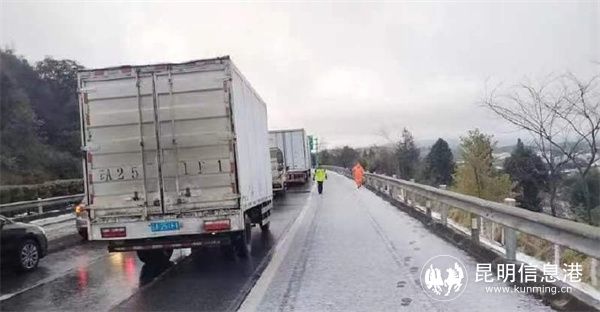 昆明信息港讯 记者合宇聪 记者从昆明市公安局交通警察支队获悉,截至22日10时30分,昆明市内昆曲高速昆明北收费站至曲靖收费站双向道路封闭、滇中环线寻沾高速寻甸收费站至沾益收费站双向道路封闭、银昆高速嵩明至昆明双向封闭。