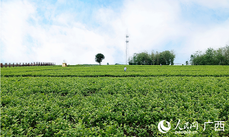 驱车沿着红水河行驶,来到位于广西来宾市忻城县红渡镇的六纳村标准化桑蚕种养示范基地,放眼望去,连片桑田青翠碧绿,片片桑叶迎风摇曳。
