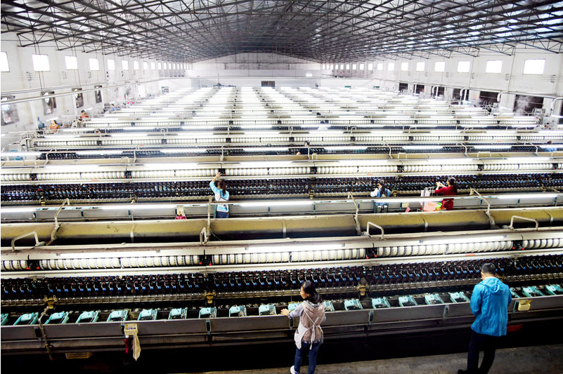 河池市一家丝绸企业缫丝车间。覃芳思摄