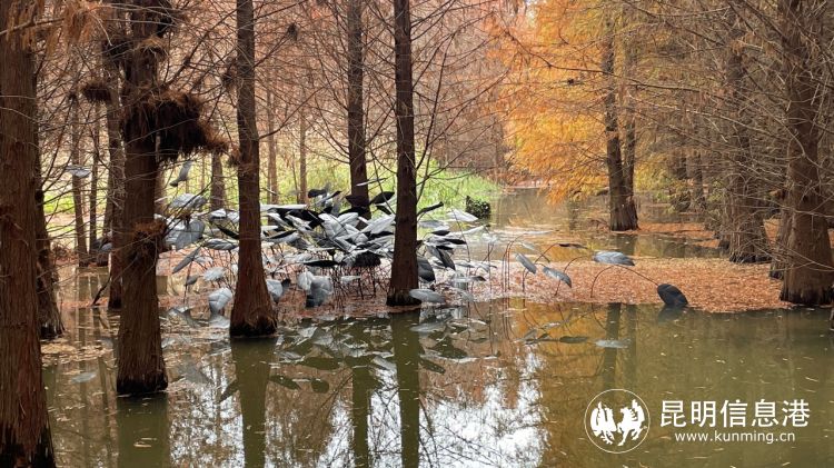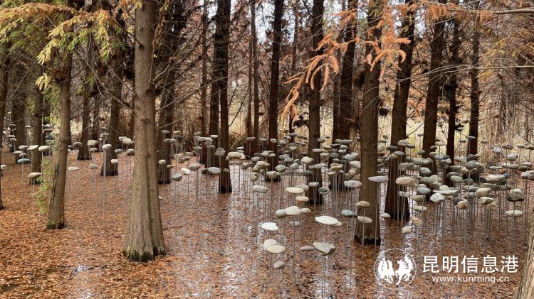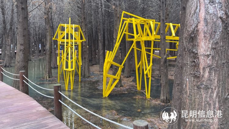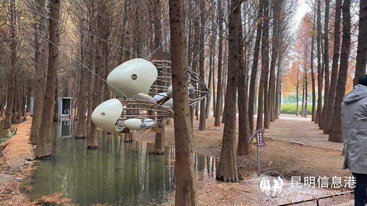 昆明信息港讯 记者甘凌菲 用自然材料和可回收材料制作大鱼带着小鱼悬浮在水杉林间,在池塘里看星星的纸青蛙一家人依偎在彼此身边,碳纤维材料打造的永恒植被系统藏匿在自然景观中,镜面不锈钢材料里得鸟和周边的树木水体融为一体、相映成趣……在捞渔河湿地公园的水林间,一个揉合了自然、艺术、设计的大自然美术馆,正在等待着市民前来探索。