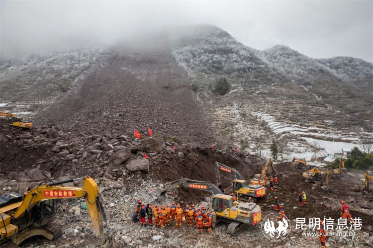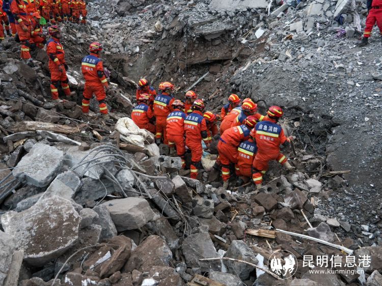 云南省消防救援总队昭通、曲靖、楚雄、玉溪、昆明5个支队和贵州省消防救援总队增援力量分别在6个作业点配合大型机械开展搜索,同时,中国救援云南搜救犬机动专业支队配合开展人犬协同搜索。
