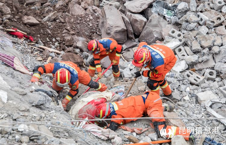 人找不到,犬上;人力挪不动,机器上;机器挖不准,人工挖掘,在这场与时间的生死较量中,云南消防救援力量分秒必争、竭尽全力,冒着风雪与时间赛跑。云南消防救援力量通过以房找人、以房屋功能定位和向导指引的方式,组织集中研判失联人员可能被埋压位置,精准定位搜救重点区域,按照逐层搜索、逐层剥离,从冲击堆积物边缘向里推进的原则搜寻失联人员,科学部署救援力量。