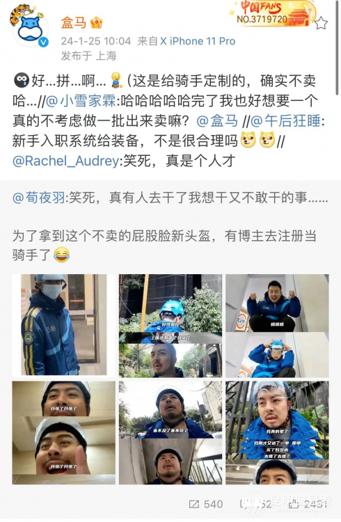 近日,“长着蓝色小耳朵”的头盔在社交媒体引发关注,还有博主“为拿到盒马的新头盔去应聘当了骑手”。对此,盒马官方微博回应称,这款头盔为骑手定制的,暂无公开发售的计划。