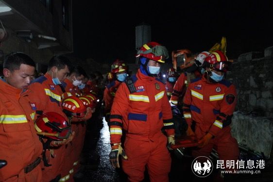 云南省消防救援总队紧急调派7个支队812名指战员、174辆消防车、45头搜救犬第一时间到达现场进行救援。当日,经应急管理部批准,国家消防救援局调派贵州省消防救援总队208名指战员、41辆消防车、6头搜救犬紧急增援。