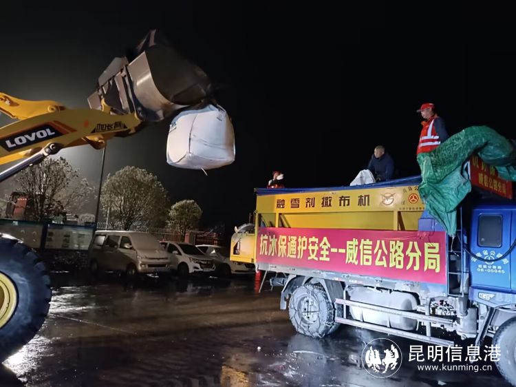 “为防止夜间气温过低导致路面结冰影响人员、物资进入灾区,现需进行新一轮的融雪作业,各保通小组车辆加满融雪剂后即刻上路!一定要保证通往灾区的道路全线畅通,为前线救援提供强有力的后援保障!”1月23日夜间,镇雄县塘房镇气温低至零下4摄氏度,多处降雪,通往灾区的公路多段出现道路结冰。24日凌晨,云南省交通运输厅党组成员、省公路局党委书记陈钢对昭通公路局抗冰保通队伍下达彻夜融雪除冰的命令。