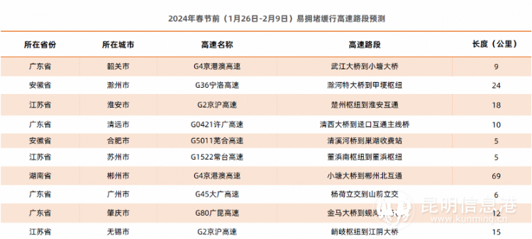 昆明信息港讯 记者 戴兴 2024年春运将从1月26日开始,3月5日结束,共计40天,预计全国旅客发送量将突破90亿人次。近日,高德地图发布了《2024年春运出行预测报告》,以下简称(《报告》)。《报告》预测,春节期间预计2月11日(正月初二)上午时段全国高速交通压力较大,而返程高峰为春节假期最后一天2月17日(正月初八)。