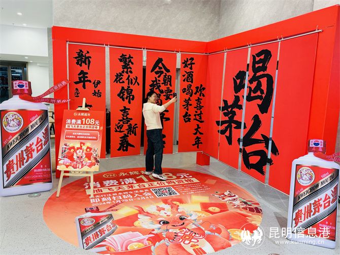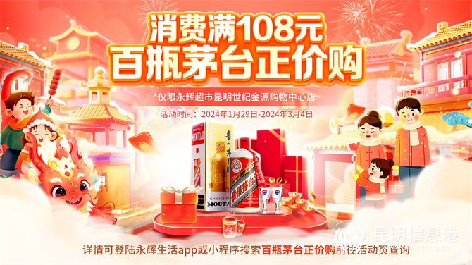 为确保春节期间供应稳定,永辉超市积极采购备货,并且线上线下一起发力,打造多重福利活动。其中最引人瞩目的,就是于云南昆明世纪金源购物中心店开展的“消费满108元,百瓶茅台正价购”活动。