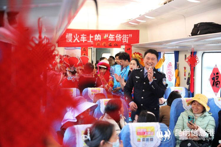 开远铁路派出所公安为旅客们带来了国家级非遗传统音乐彝族海菜腔表演,随着音乐响起,车厢里的旅客们纷纷鼓掌。青年志愿者们还为旅客们送上了春联、福字,把新春的祝福传递到了车厢的每个角落。“你们铁路太棒了,这些创新地服务举措一次又一次的刷新了我对铁路的认知。”彝族旅客贺星表示看着铁路职工用心为大家准备的惊喜,对铁路的“好感度”更高了。