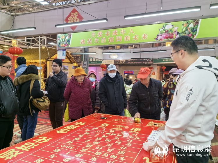 同时,现场设置了极具市井气、烟火气和生活气的“滚滚乐”小游戏,游戏吸引市民们热情参与。在东站农贸市场买菜的市民皆可凭券参与游戏,通过滚瓶子的方式,赢取价值598元新春节大礼包、厨具、扑克牌、抽纸、饮料等奖品。