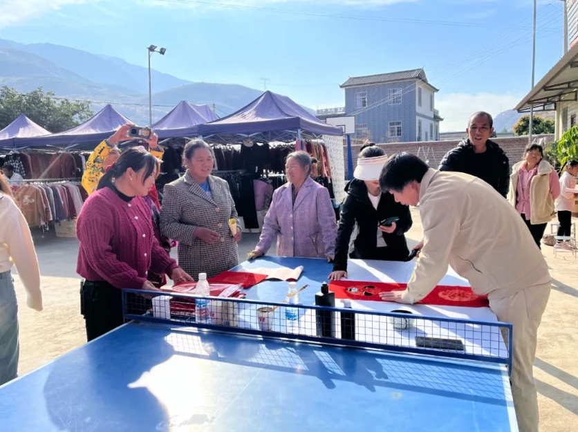 “和气生财迎富贵,顺意平安永吉祥”“笑语欢歌辞旧岁,华灯爆竹迎新春”。无联不成春,有联春更浓,1月26日,在春节到来之际,片角镇热河村文明实践站在热河街天开展送春联志愿服务活动,邀请到青年书法家谭肆老师现场为村民挥毫泼墨写春联,小朋友们背古诗换春联,既传承了中华优秀传统文化,也将新春之“福”送到群众心中,营造了“文化”春节氛围。